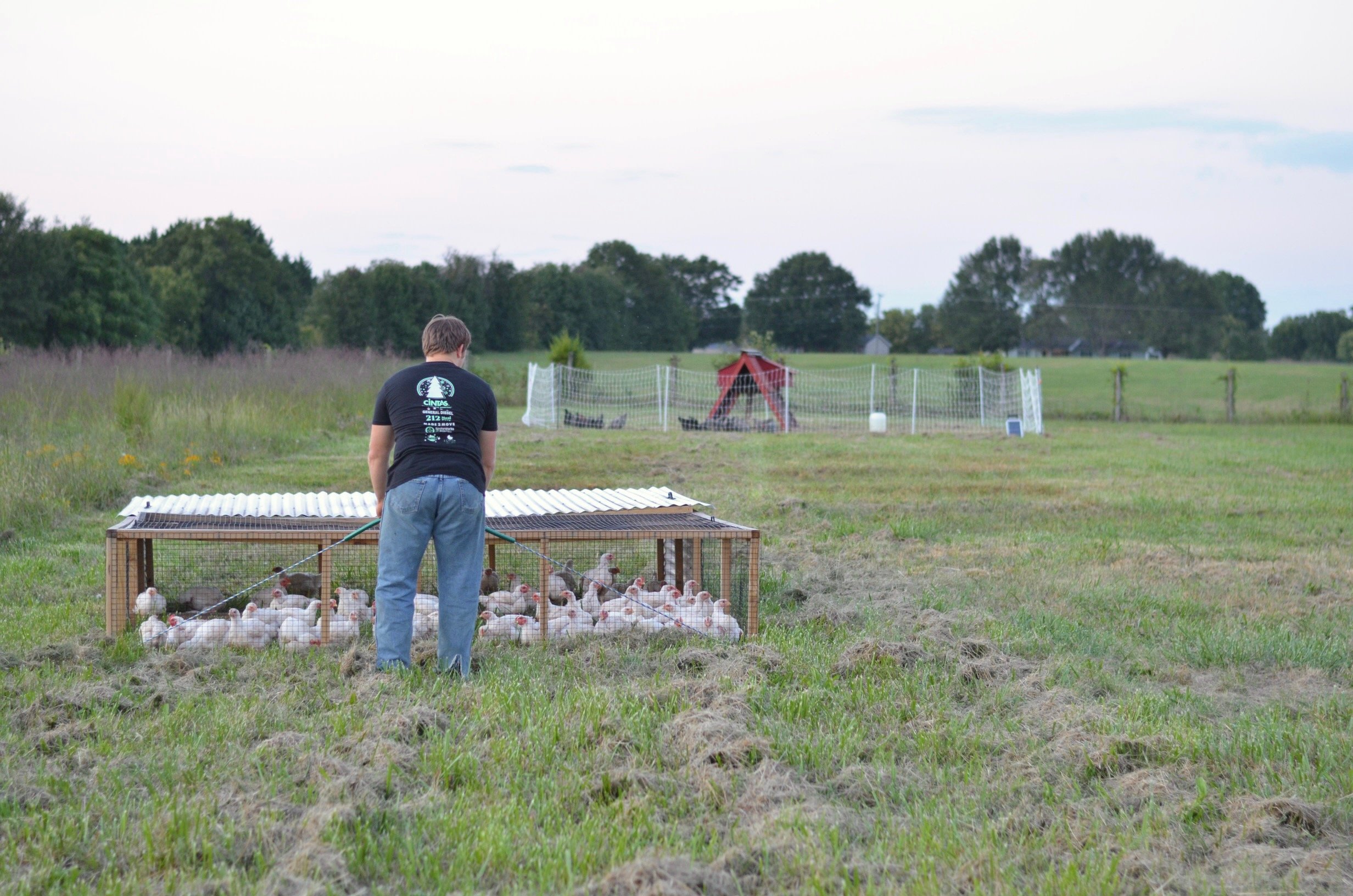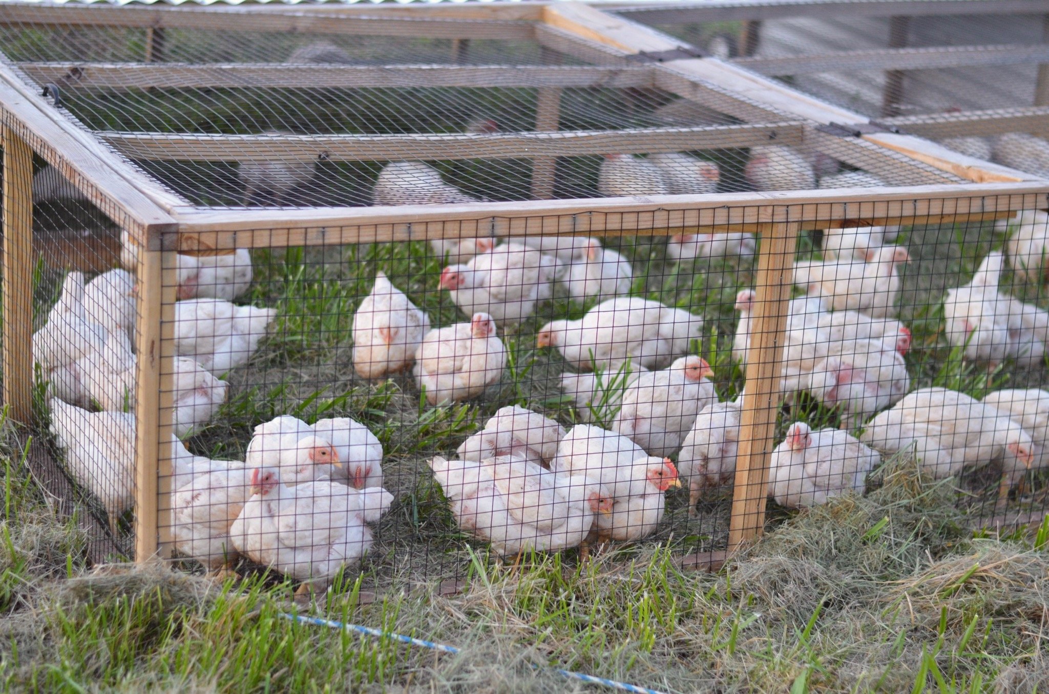 Our birds are raised in chicken tractors, a 10x12 moveable coop that focuses grazing efforts and concentrates manure. This technique rebuilds the soil to be utilized for years to come.